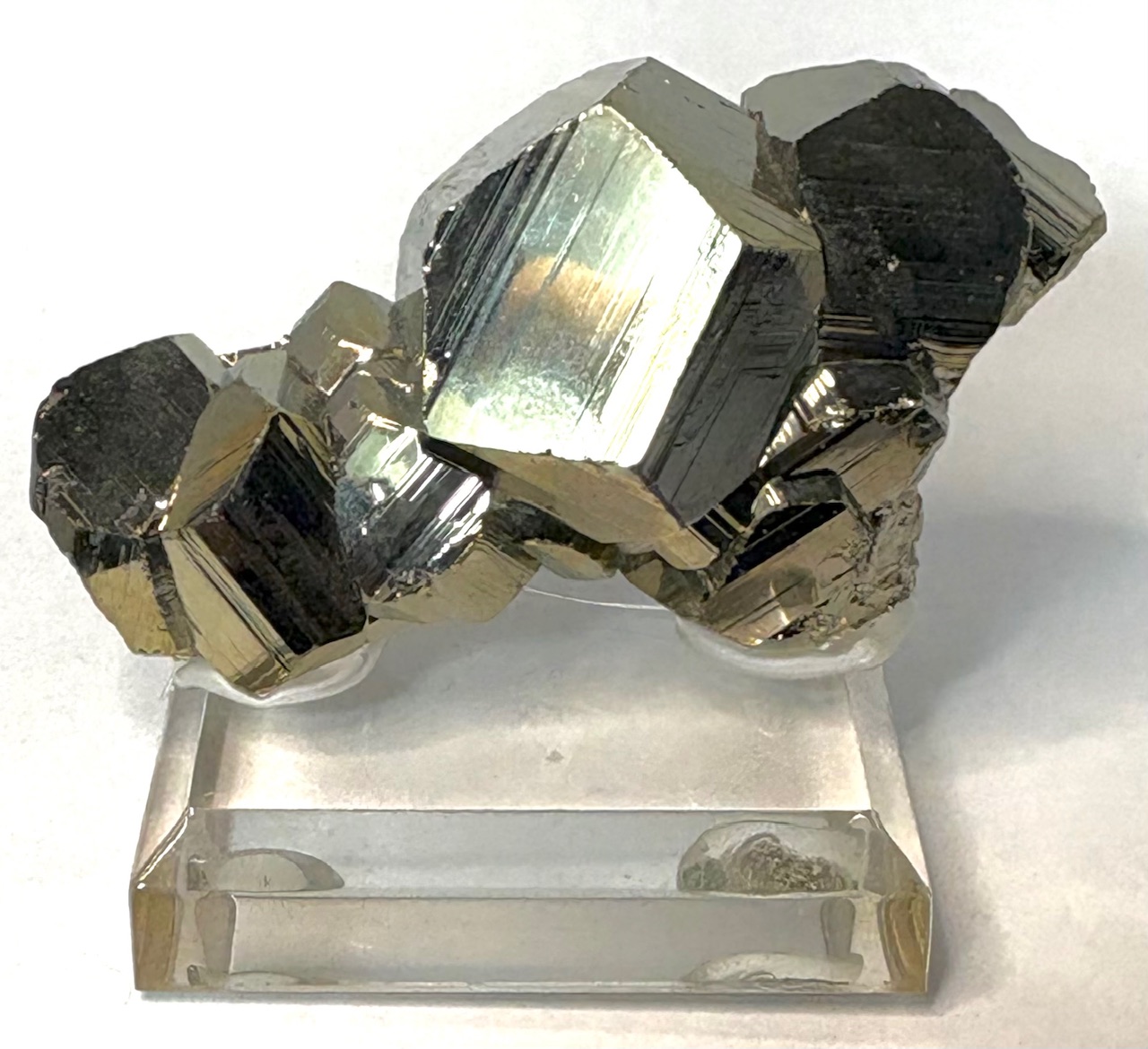 Specimen details: Pyrite crystals with pyritohedral habit. Huanzala Mine, Huallanca Dist., Ancash Dept., Peru. 7.5 cm.