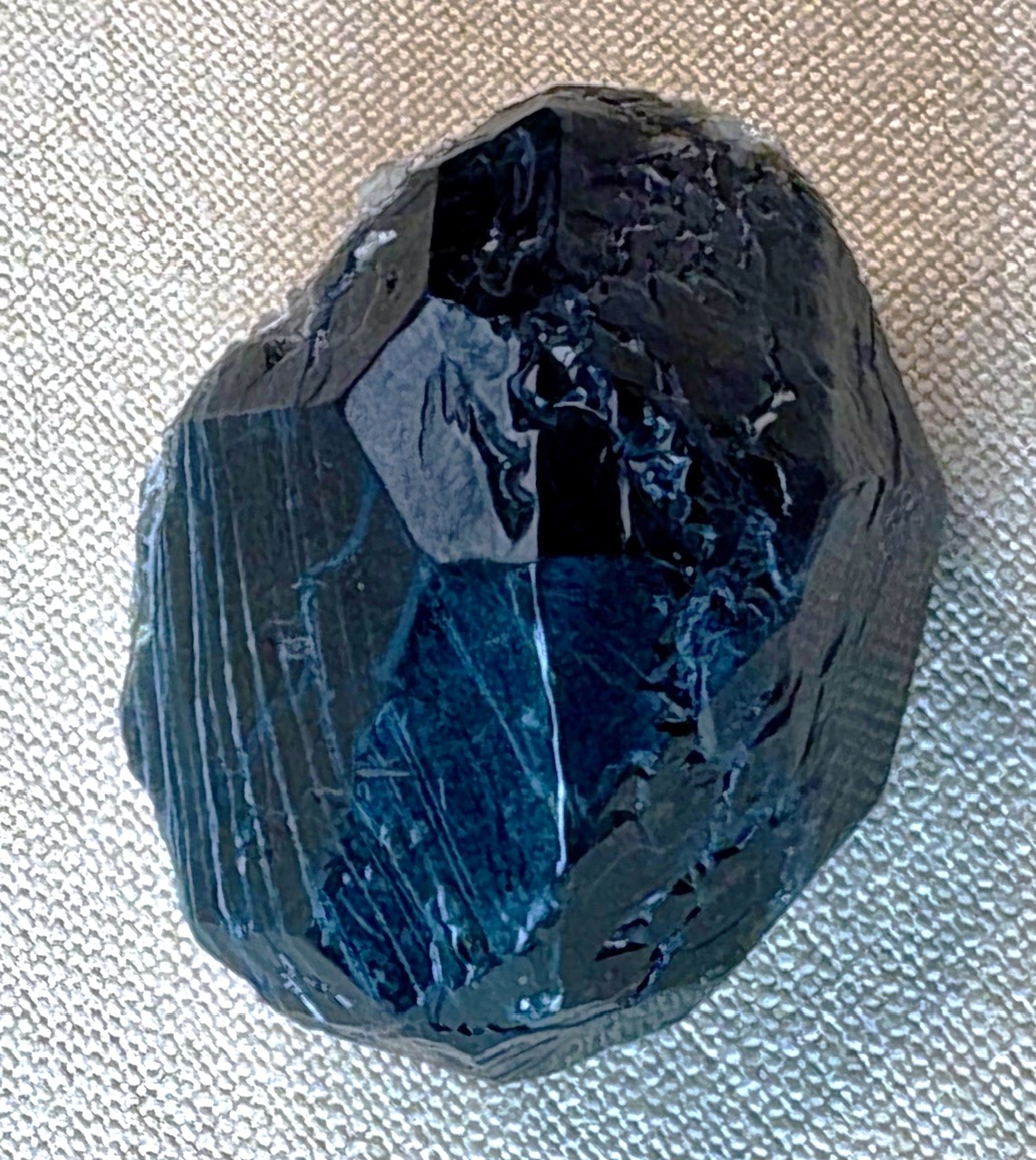 First, here is a photo of the spinel from Russia with the model I made in a similar orientation.