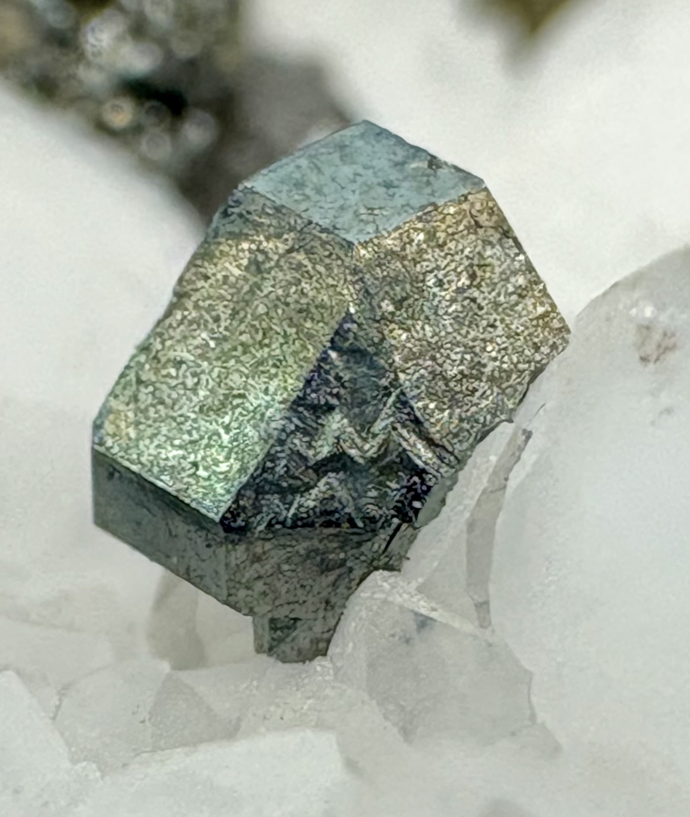 Specimen details: Tennantite on quartz. Zacatecas, Mexico. 4mm crystal.